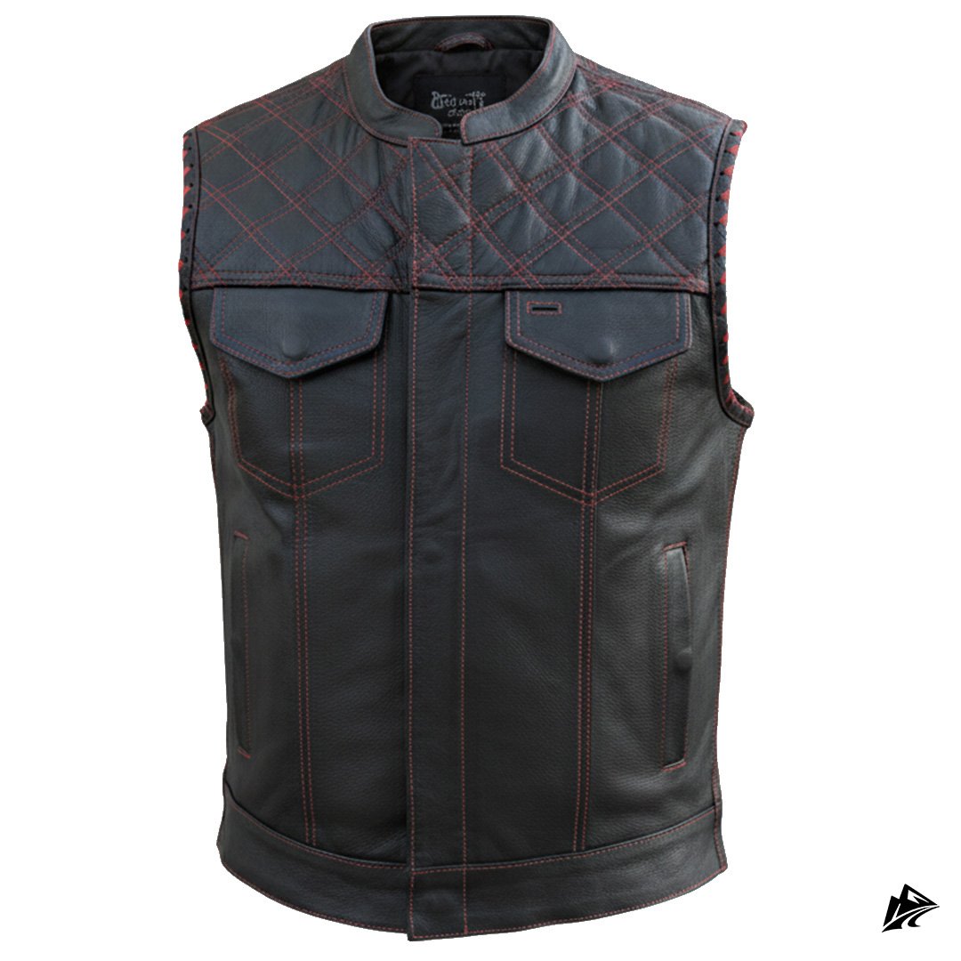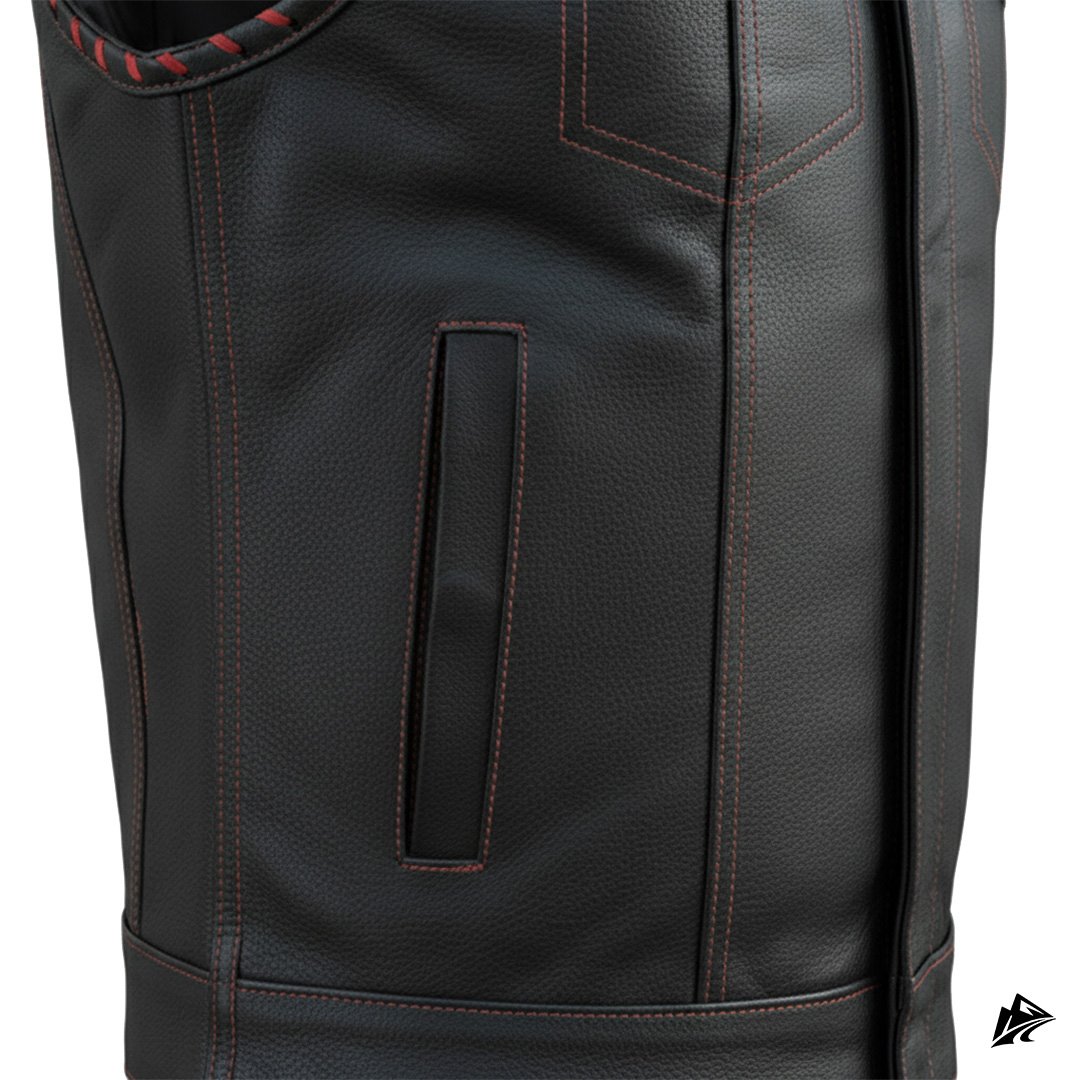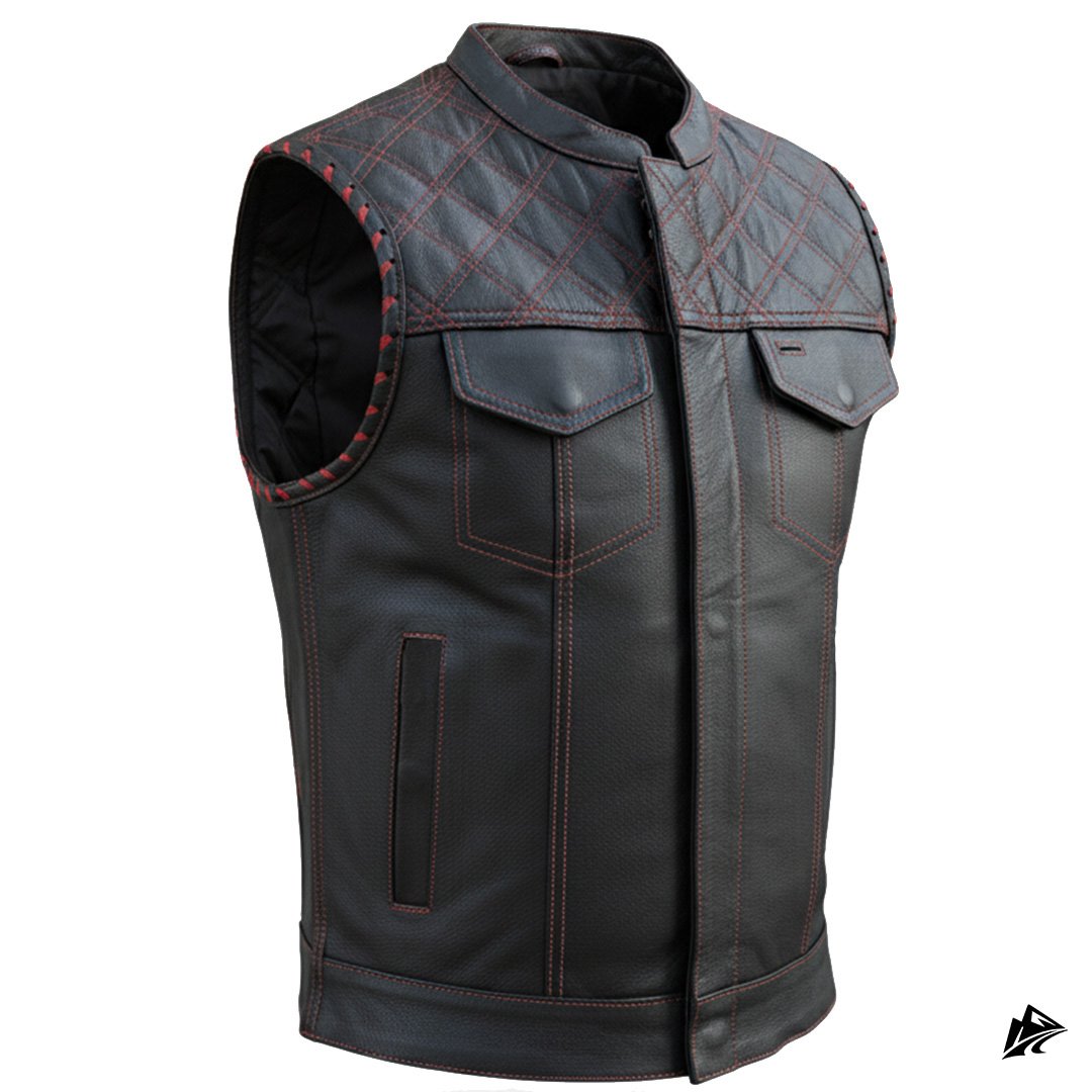 LMCV Red Stitched Quilted Leather Vest – Custom-Made Excellence