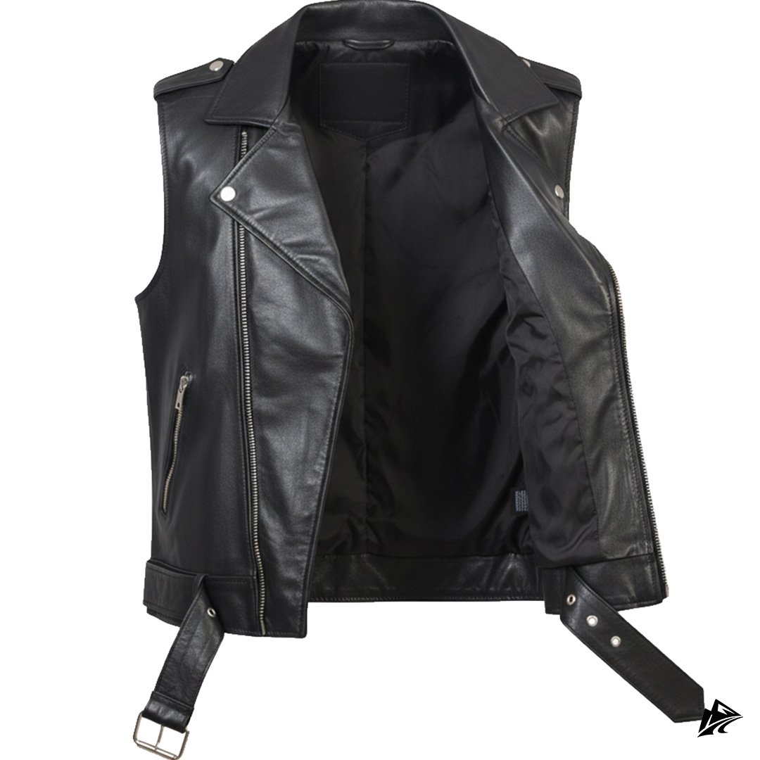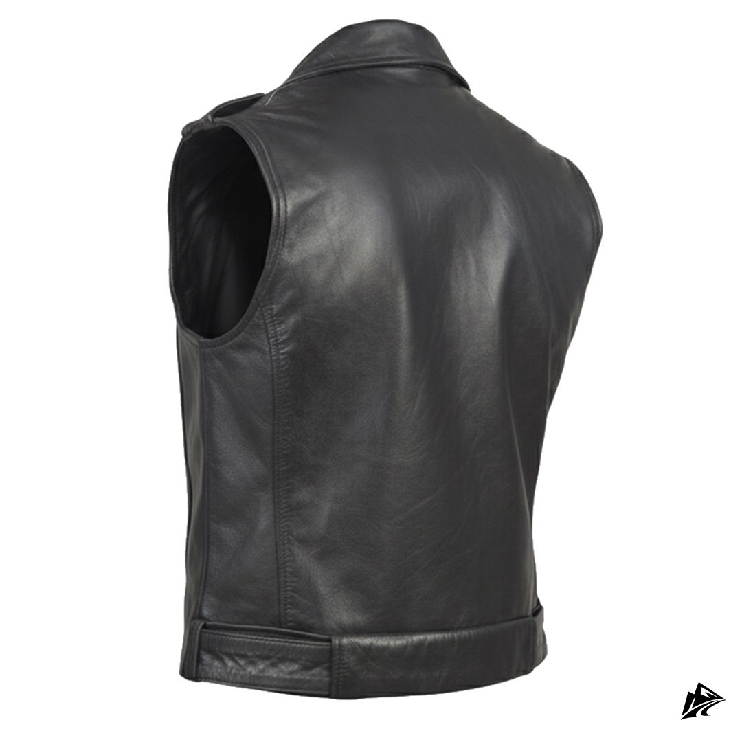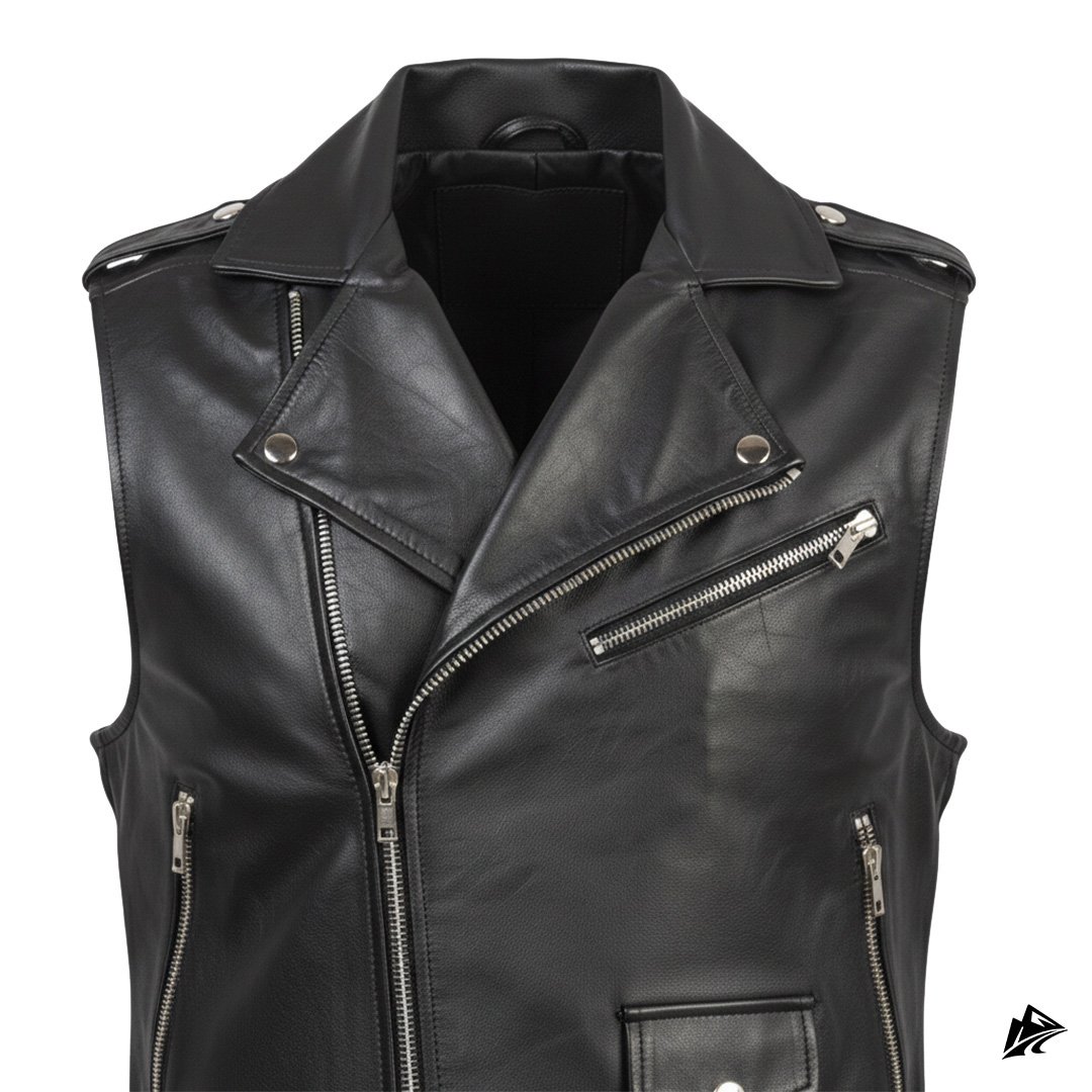 Introducing the Men’s Black Leather Biker Vest, a must-have for any motorcycle enthusiast or fashion-forward individual. Crafted from premium, high-quality leather, this vest is designed to offer both durability and comfort. The classic cropped cut provides a sleek, modern silhouette while the bold zipper details on the chest and sides give it an edgy, biker-inspired look.