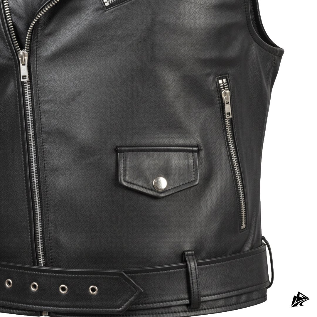 The adjustable belt ensures a customizable fit, allowing you to tailor the vest to your body for a flattering and secure fit. The versatile design makes it perfect for pairing with other biker gear or adding a touch of rebellious style to casual outfits. Whether you’re hitting the open road or making a statement on the street, this vest delivers both style and function.