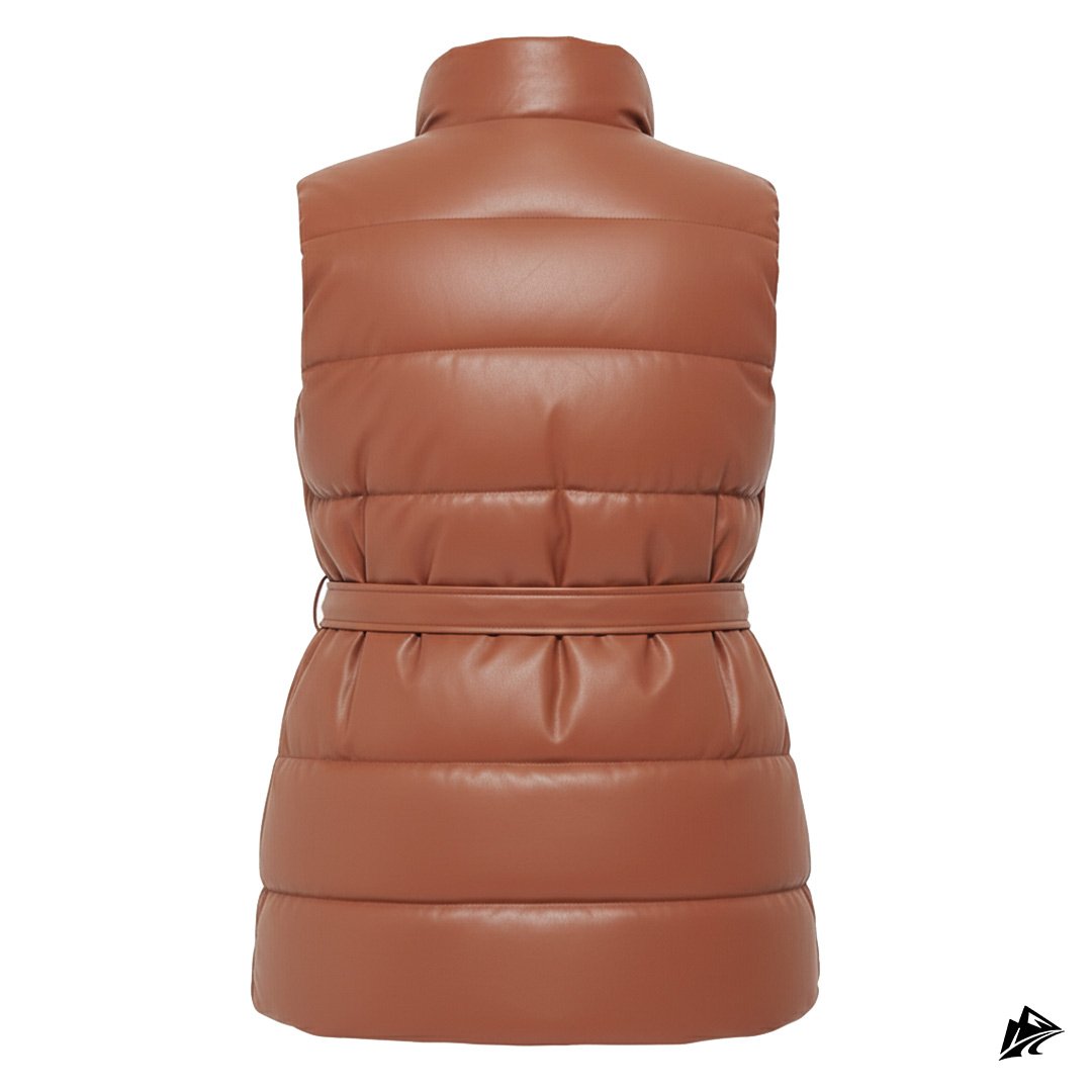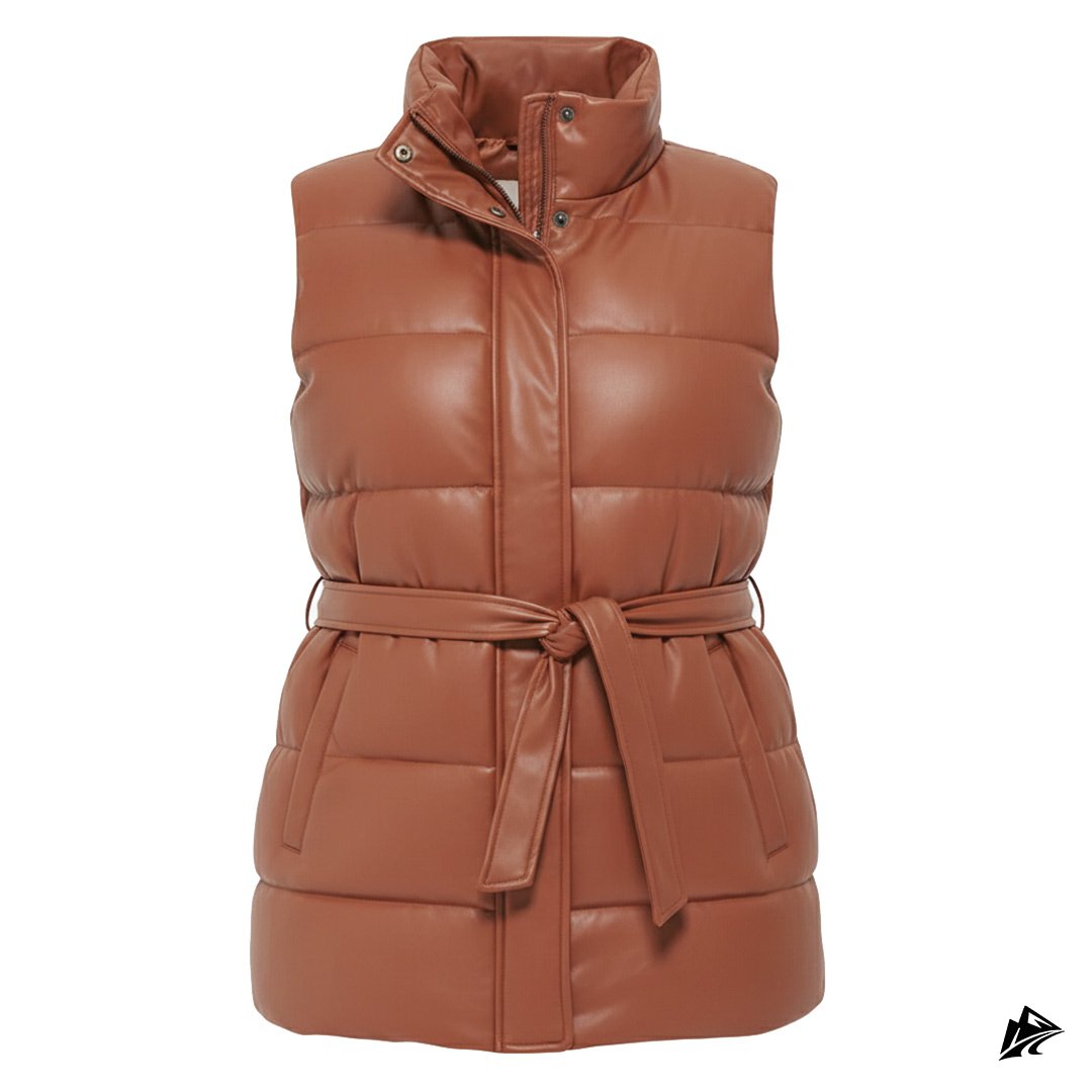 women brown puffer vest long Brown Leather Quilted Puffer V...