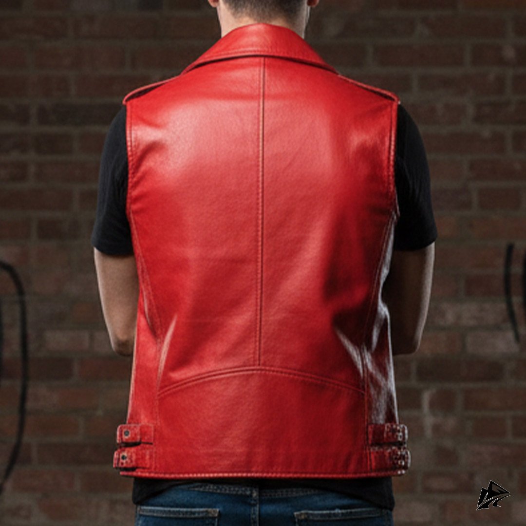 Make a fashion statement with this striking red cropped leather vest for men. Designed for those who appreciate bold fashion choices, this vest combines edgy style with timeless appeal. Crafted from high-quality leather, it offers durability, comfort, and a sleek appearance that elevates any outfit. Whether you’re looking to add a pop of color to a casual look or want to stand out at an event, this vest is the perfect choice.
