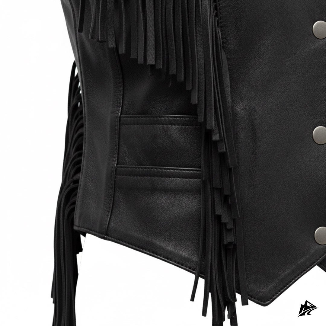 Fringe Detailing: The eye-catching fringe along the front and back adds movement and texture, creating a bold western-inspired aesthetic that stands out wherever you go.